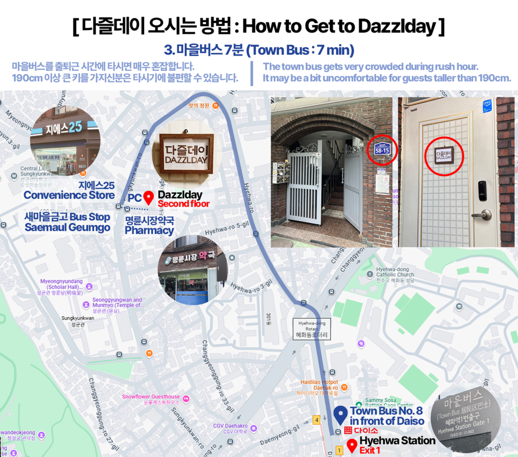 Located only a 7-15 minute from Hyehwa Station, this home offers excellent access to public transportation. For international travelers, especially first-time visitors to Seoul, easy subway access is one of the most important factors when choosing accommodation — and this location delivers exactly that.